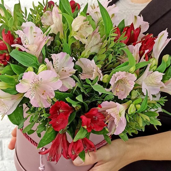 Привезли свежий и ароматный букет в оригинальной коробочке, даже лучше чем на фотографии! К заказу еще добавили конфетки. Может и дороговато, но все было выполнено быстро и качественно, именинница счастлива.