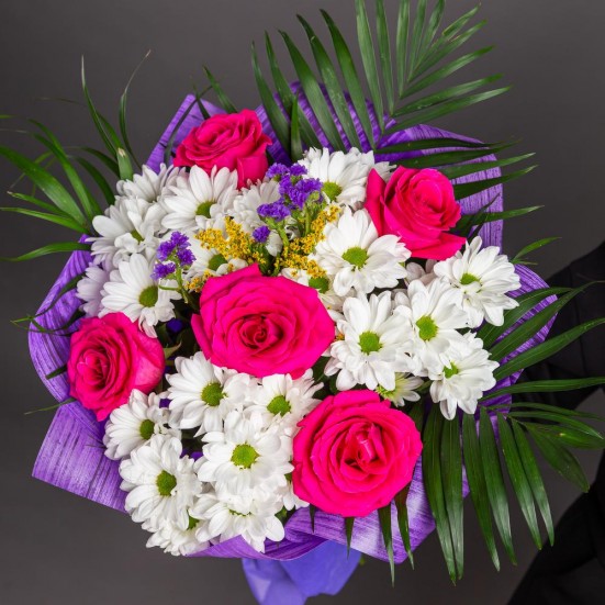 Привезли свежий и ароматный букет в оригинальной коробочке, даже лучше чем на фотографии! К заказу еще добавили конфетки. Может и дороговато, но все было выполнено быстро и качественно, именинница счастлива.