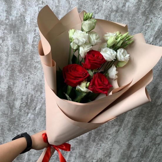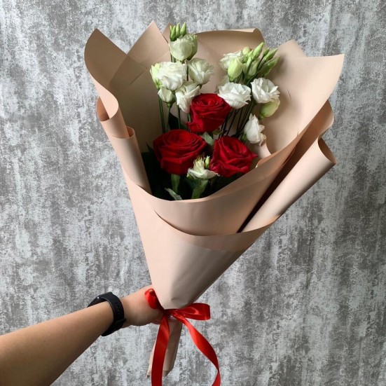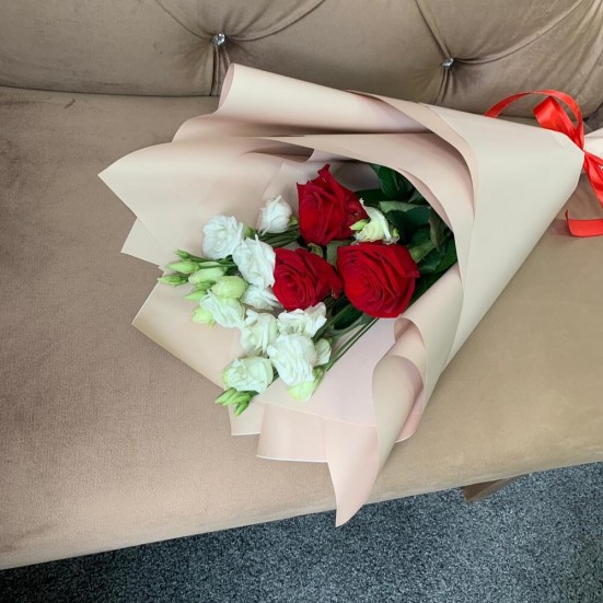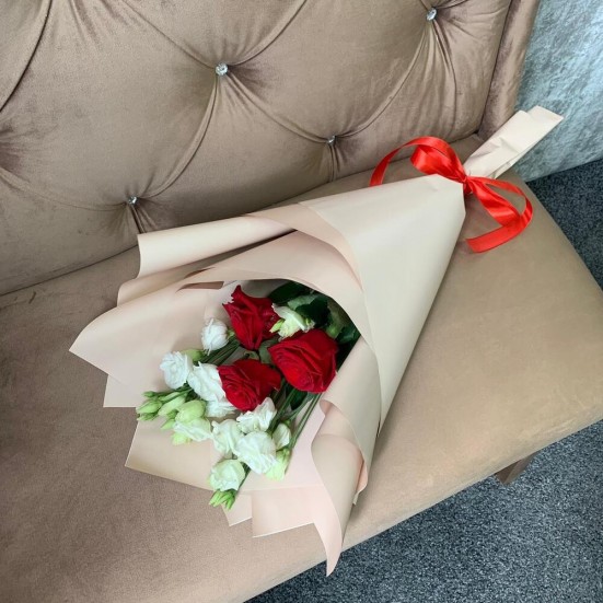 Букет «Эустомы, роза красная»