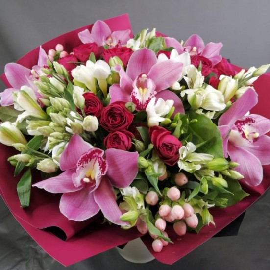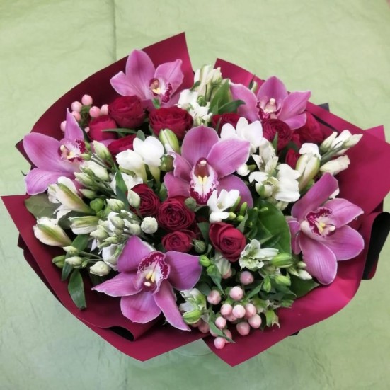 Привезли свежий и ароматный букет в оригинальной коробочке, даже лучше чем на фотографии! К заказу еще добавили конфетки. Может и дороговато, но все было выполнено быстро и качественно, именинница счастлива.