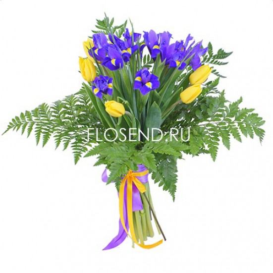 Букет желтые тюльпаны и ирисы