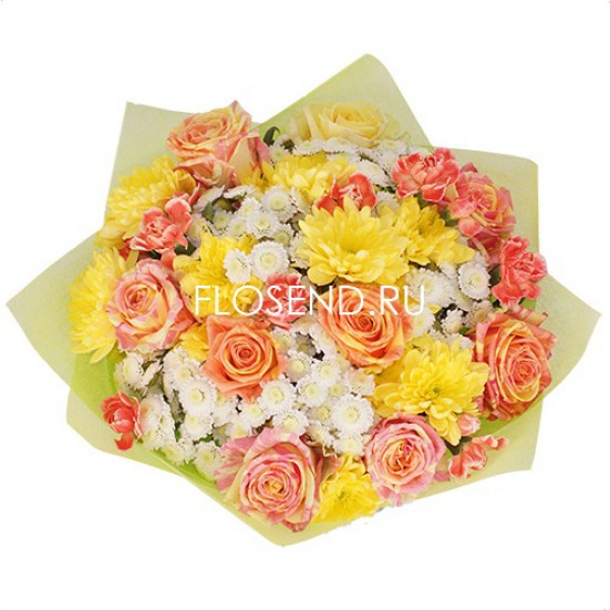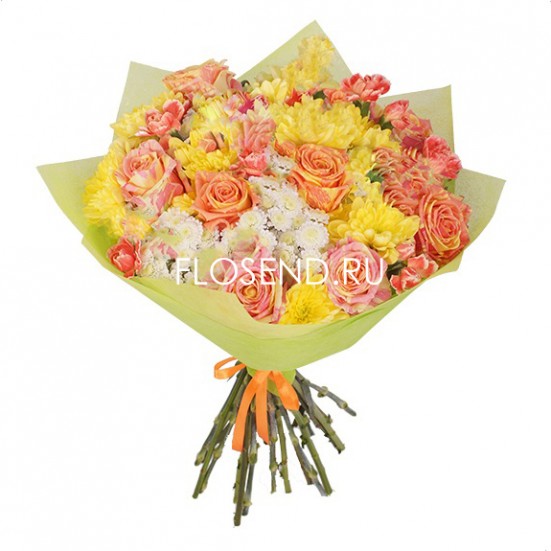 Букет из желтых хризантем и роз